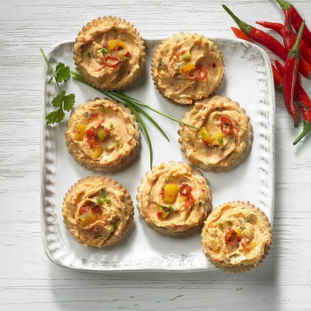 Die Brotscheiben toasten. Alle Scheiben mit der Kühlmann Red-Hot-Chili-Creme bestreichen. 4 Scheiben mit Spinat und Zucchinischeiben belegen, dann die Fetascheiben darauflegen. Je 2 EL Kühlmann Kirschpaprika-Chutney darauf geben. Die übrigen Brotscheiben daraufsetzen und die Sandwiches sofort servieren.